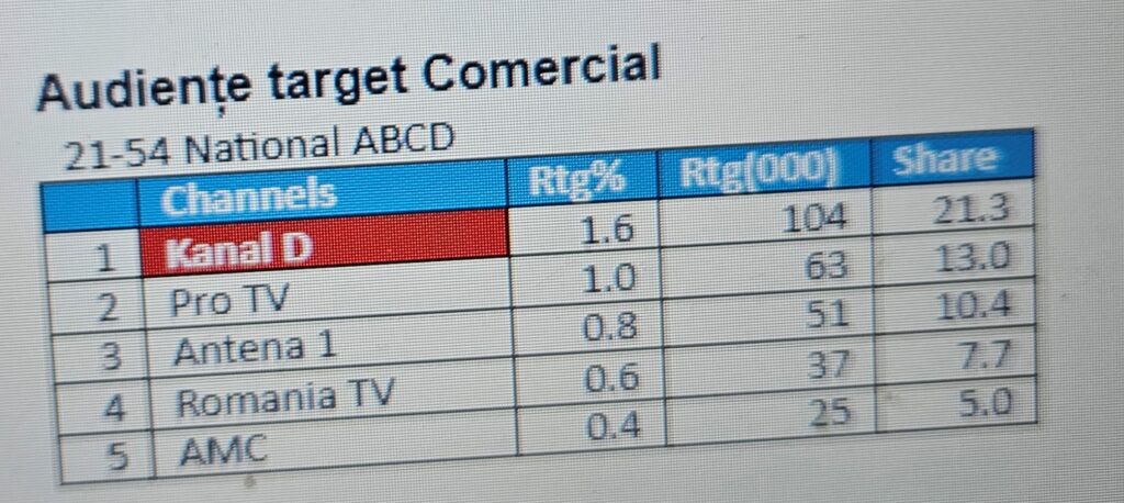 Yüzbinlerce Romen, Cristina Dorobanțu'nun sunduğu öğle yemeği yayını Kanal D Haber'den payına düşeni almak için Kanal D TV kanalını seçti.