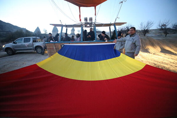 Romanya'nın Nevşehir-Kayseri Fahri Konsolosluğunca gerçekleştirilen etkinlikte, bazı sıcak hava balonlarının sepetlerine Romanya bayrakları asıldı.