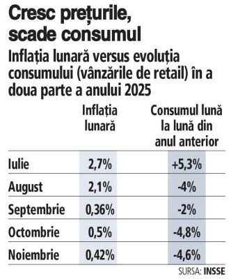 Romanya İstatistik Kurumu (INS) verilerine göre (Kasım 2021 verilerine dayanarak yapılan karşılaştırmaya göre), Kasım 2024'te perakende cirosunda yüzde 116'lık olağanüstü bir zirve yaşanıyor; bu da Kasım 2023'e göre 10 puanlık bir artış anlamına geliyor.