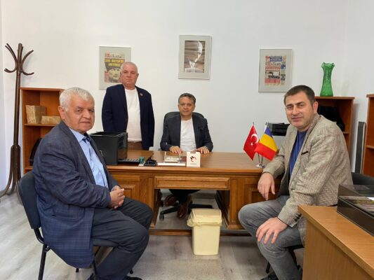 Gazete Balkan’ın 18’inci yıl etkinliğine katılmak üzere Bükreş’e gelen Ankara merkezli Küresel Gazeteciler Konseyi (KGK) başkanı Mehmet Ali Dim, başkan yardımcısı Ferhat Yıldırım ve Genel Sekreter Lütfü Karakaş’tan oluşan heyet Gazetemizin bürosunu ziyaret etti.
