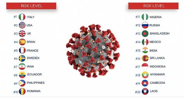 Öte yandan Analiz şirketinin ülkelerin risk sıralamasını ölçtüğü araştırmasında ise en riskli 20 ülkenin Covid-19 enfeksiyon ile ölüm oranları, karantina izleme süreci, tespit, yönetim gibi birçok faktörü incelendi. Araştırmada İtalya, ABD, İngiltere, İspanya ve Fransa en riskli ilk beş ülke olurken Romanya 10’uncu sırayı aldı. En riskli 20 ülke arasında Türkiye yer almadı.