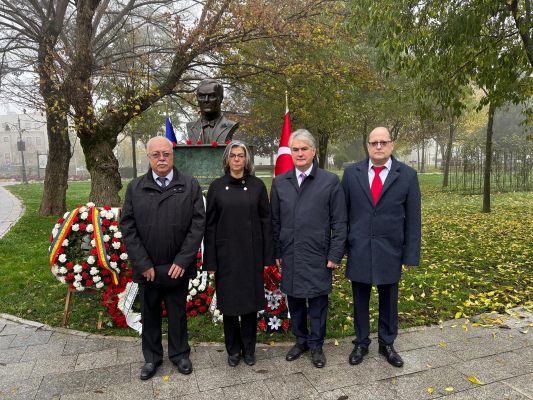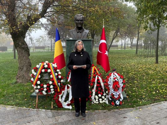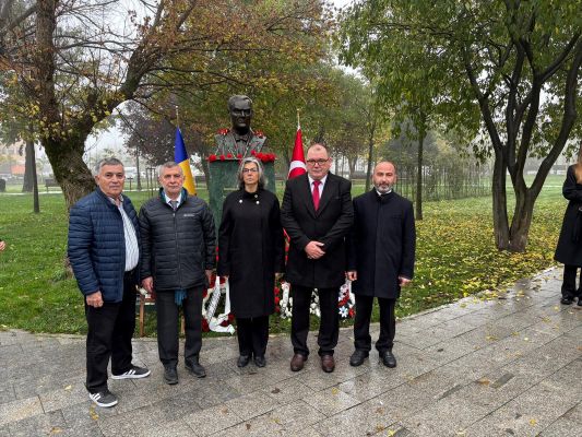 Ulu önderimiz Gazi Mustafa Kemal Atatürk, ebediyete intikalinin 87. yıldönümünde Köstence Belediye Parkındaki büstü önünde düzenlenen törenle anıldı.