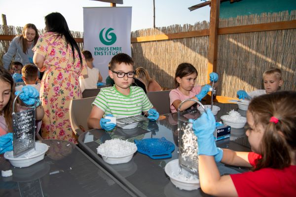 Renkli kum ile boyama atölyesi ve Ebru Sanatı atölyesi ile çocuklar kendi eserlerini yapma fırsatı yakaladılar. Katılımcılara kullanılan malzemelerin ve renklerin Türkçeleri de öğretildi. Mis Meyve Sabunu Atölyesi’nde çocuklar birbirinden farklı şekillerle, rengarenk ve güzel kokulu meyve sabunları hazırladılar. Ayrıca Poiana Basmelor Oyun Parkı’nda en sevdikleri masal kahramanları ve animatör ile birlikte oyunlar oynadılar, dans ettiler.