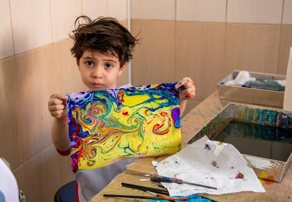 “Çocuklar için ebru atölyesi 2 grup olmak üzere 3 hafta sürecek ve dersler her Cumartesi ve Pazar günleri 2 saat şeklinde gerçekleştirilecektir. Çocuklar için de düzenlenen kurs gelecek nesillerin mimarları olan çocukların ebrunun gizemli dünyasını keşfetmelerini sağlamaktadır. Kendi yaptıkları eserleri gören çocukların sevinçle karmaşık şaşkın bakışları ve ebru sanatının özgür dünyası çocukların hayal dünyalarındaki sınırları da ortadan kaldırmaktadır.