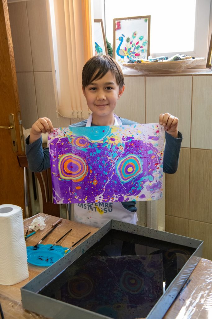 Köstence Yunus Emre Enstitüsü'nde çocukların sanatsal üretkenliklerini artırmaya yönelik düzenlenen kurslara bir yenisini daha ekledik. 5-14 yaş arası çocuklara yönelik Geleneksel Türk El Sanatlarımızdan Ebru Sanatı atölyesi 2 Nisan Cumartesi günü başladı.