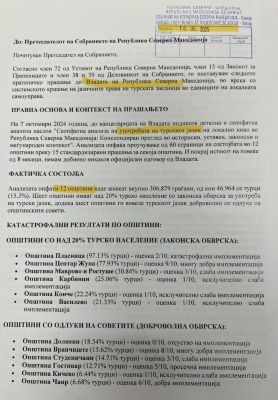 Makedonya Türkleri Hak ve Demokrasi Hareketi’nin Avrupa Cephesinden seçilen Milletvekili Salih Murat, Kuzey Makedonya’daki Türk toplumuna karşı dil ayrımcılığının sürdüğünü belirterek Avrupa Güvenlik ve İşbirliği Teşkilatına (AGİT) dil haklarının sistematik olarak çiğnendiği konusunda resmî başvuru yaptığını açıkladı.