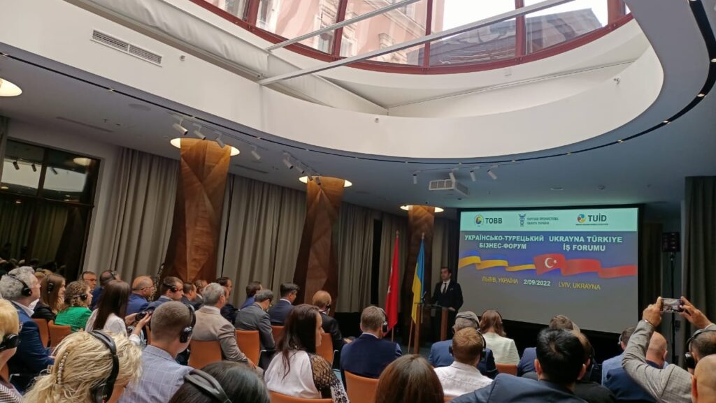 Ukrayna, Lviv’de 2 Eylül 2022 tarihinde, Ukrayna bakanlıkları, bölge devlet idaresi, Ukrayna ve Türkiye’nin diplomatik misyonları, Ukrayna Ticaret ve Sanayi Odası, Türkiye Odalar ve Borsalar Birliği, Türk Ukrayna İşadamları Derneği, yabancı şirketler ve yabancı şirketlerin Ukrayna’daki temsilcilerinin katılımıyla bir Ukrayna-Türkiye İş Forumu düzenlendi. Foruma; Türkiye’nin Kıyiv Büyükelçisi Yağmur Ahmet Güldere, Ukrayna’nın Ankara Büyükelçisi Vasıl Bodnar, Lviv Valisi Maksım Kozıtskıy, Ukrayna Ticaret ve Sanayi Odası Başkanı Gennadiy Çıjıkov, Türkiye Odalar ve Borsalar Birliği (TOBB) Başkanı M. Rifat Hisarcıklıoğlu, Konya Ticaret Odası Başkanı ve TOBB Başkan Yardımcısı Selçuk Öztürk ile Türk Ukrayna İşadamları Derneği (TUİD) Burak Pehlivan katıldı.