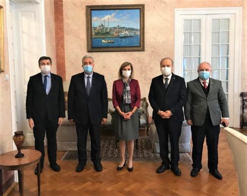 Türkiye Maarif Vakfı Yönetim Kurulu Üyeleri Nedim Kaya, Ahmet Türkben ve beraberlerindeki heyet, Bükreş Büyükelçisi Füsun Aramaz’ı ziyaret etti.