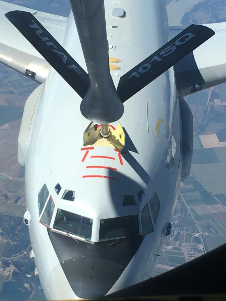 MSB’nin sosyal paylaşım sitesi Twitter’daki hesabından yapılan açıklamada, “NATO güvence tedbirleri kapsamında, NATO’ya ait AWACS uçağına, Hava Kuvvetlerimize ait tanker uçağı tarafından Romanya üzerinde 23 bin feet irtifada yakıt ikmali yapıldı” denildi.