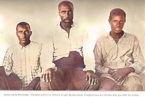 Dobruca Arapları: Ortadaki adamın biraz siyahî kanı var. Saç yapısı Araplarınkine benzemiyor.