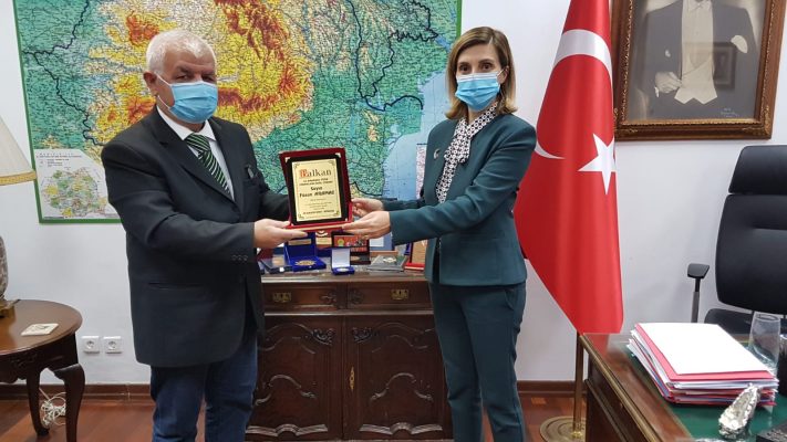 Gazete Balkan Genel Yayın Müdürü Hamdi Yılmaz, ilk olarak Bükreş Büyükelçisi Füsun Aramaz’a teşekkür plaketini sundu.