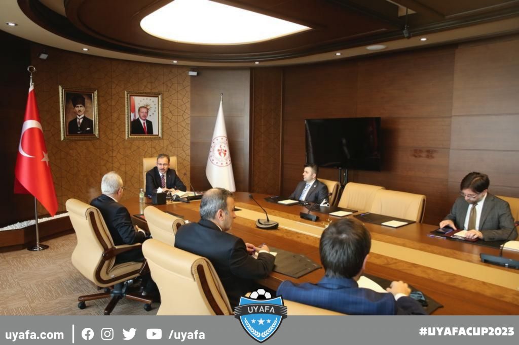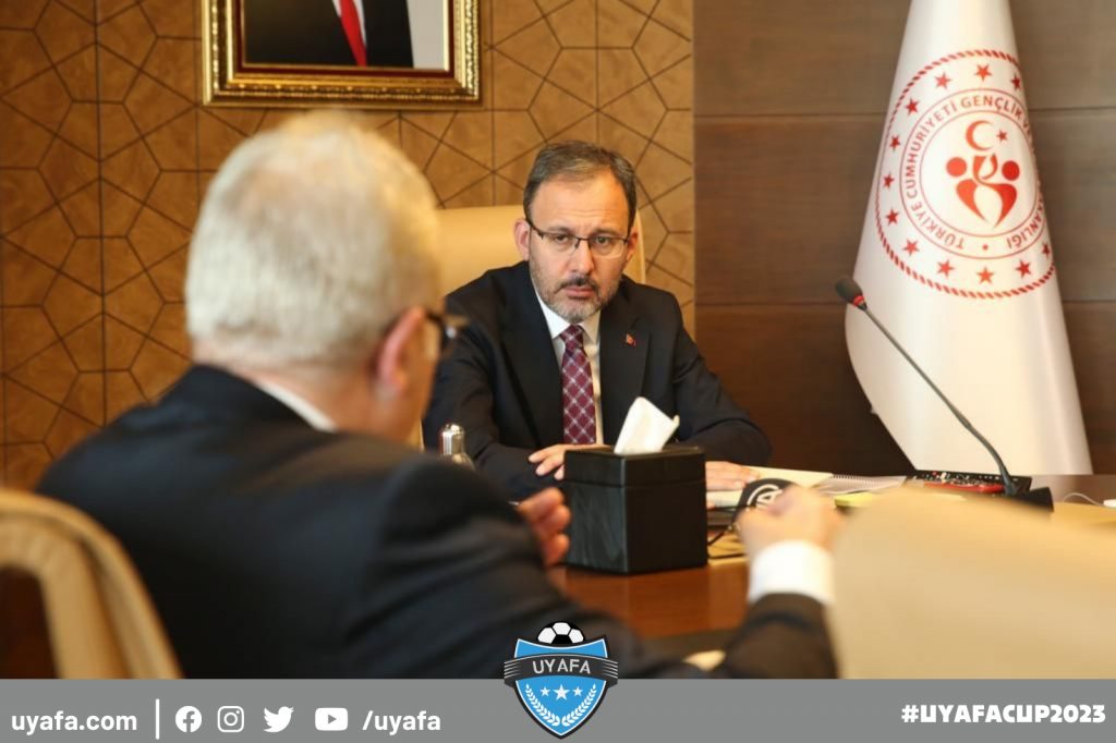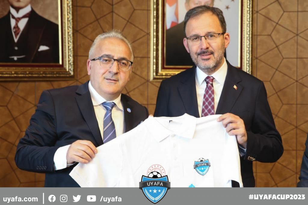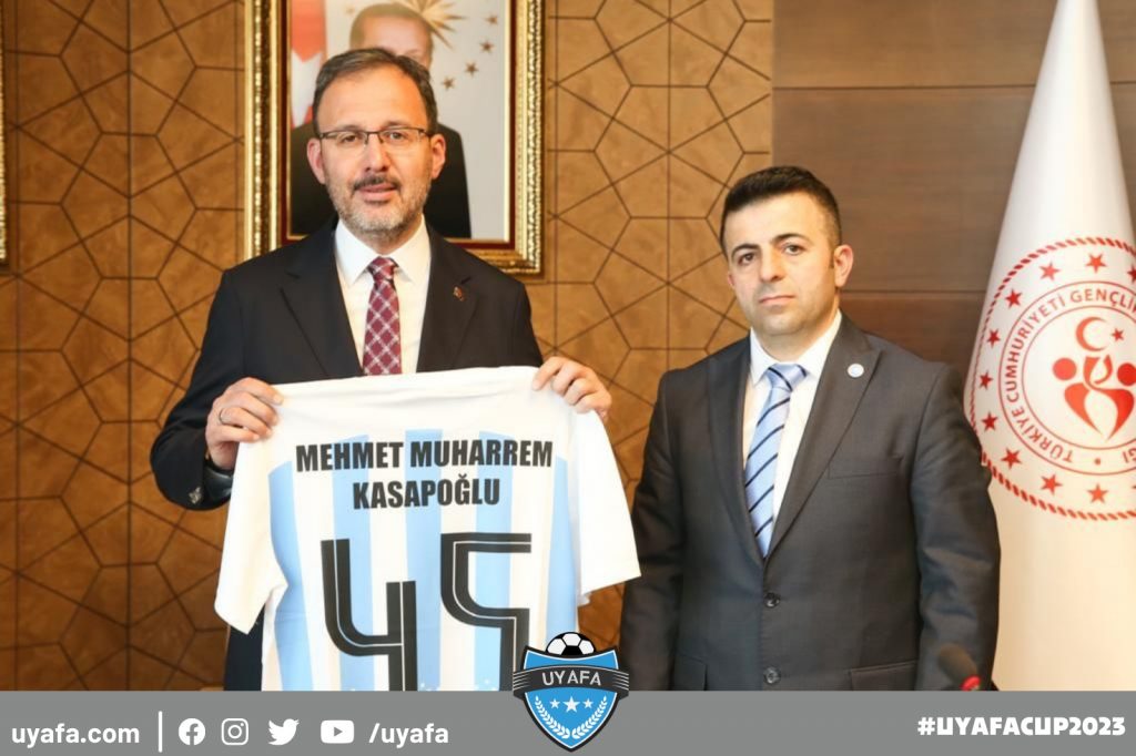 Uluslararası Yetenek Avcıları Futbol Akademisi (UYAFA) Genel Başkanı Özcan Şimşek ve UYAFA Avrupa Koordinatörü Necati Alçık, Gençlik ve Spor Bakanı Mehmet Kasapoğlu ile görüştü.