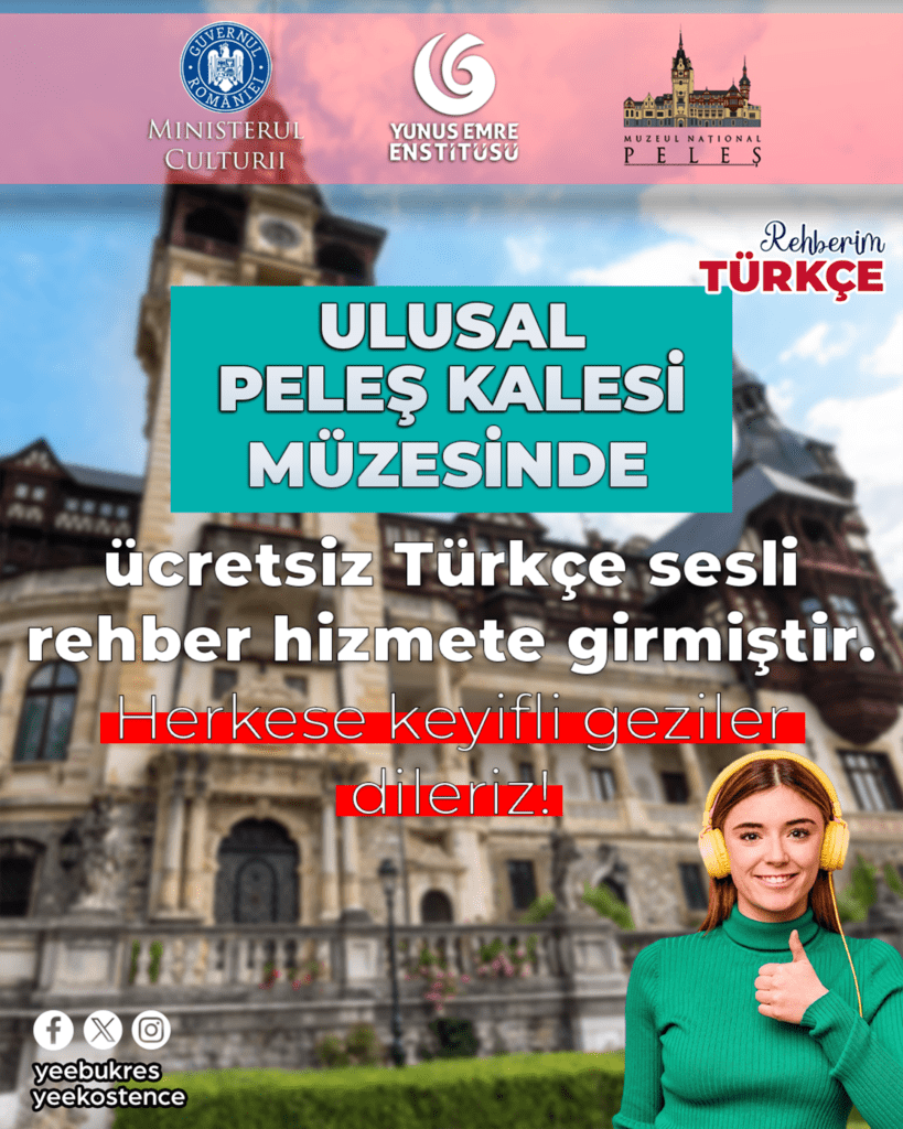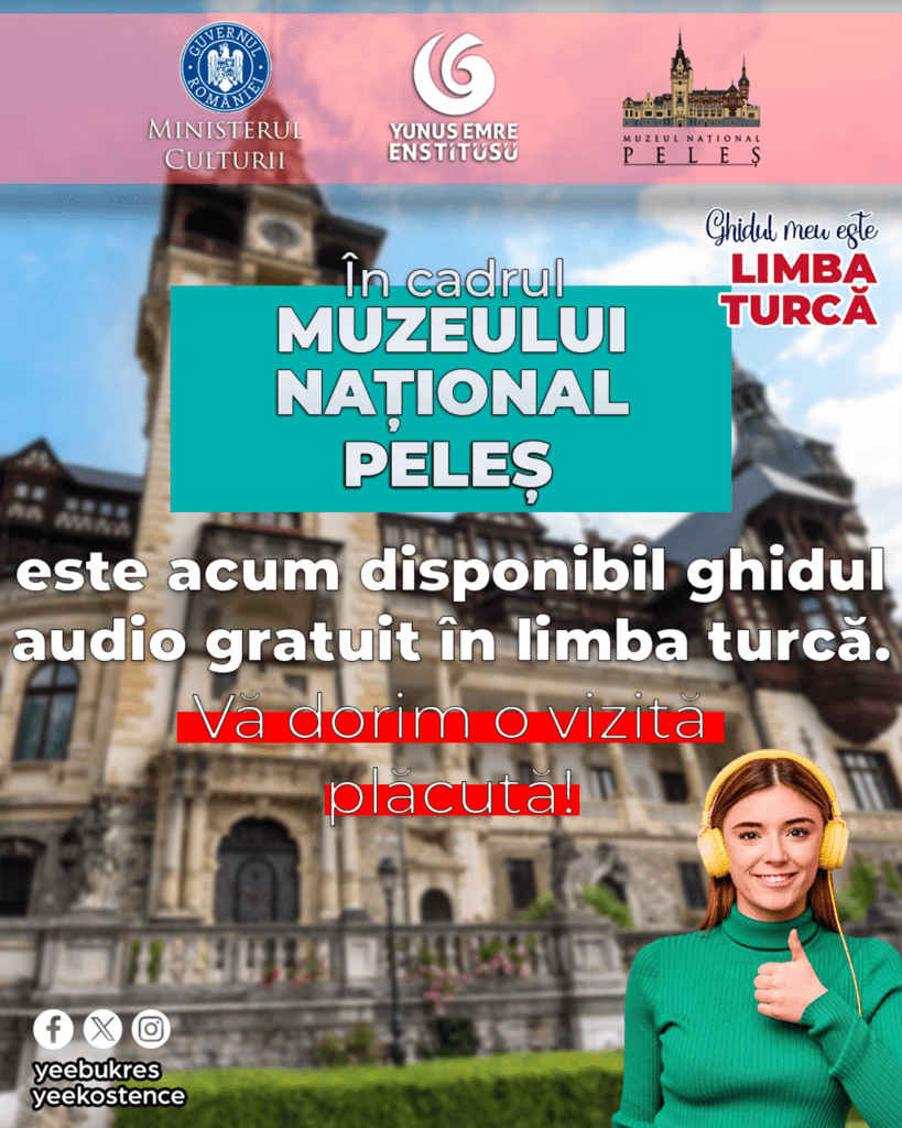 Romanya Kültür Bakanlığı ve Romanya Yunus Emre Enstitüsü iş birliğiyle yürütülen “Rehberim Türkçe Projesi” kapsamında, Romanya'daki müzelerde bulunan bilgi notları, basılı materyaller ve sesli rehberler, Yunus Emre Enstitüsü desteğiyle Türkçeye tercüme ediliyor. Bu müzelerden birisi olan ve yılda yaklaşık bir milyon kişinin ziyaret ettiği Peleş Kalesi Müzesinde ziyaretçiler artık basılı materyallerin yanı sıra sesli rehber aracılığıyla da müzeyi Türkçe olarak gezebiliyor.