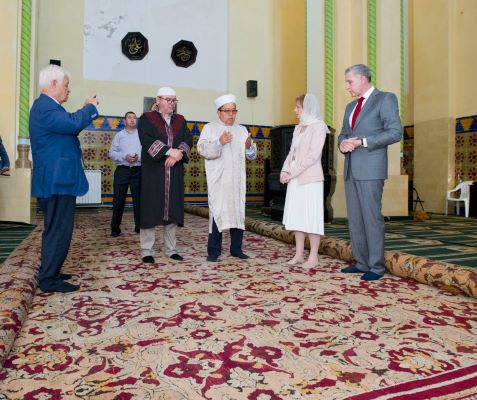 Müftü Murat Yusuf, Kraliyet ailesi mensuplarına camii hakkında bilgi verdi.