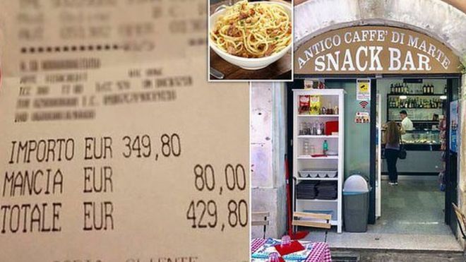 4 Eylül'de Roma'nın merkezindeki Antico Caffe di Marte'de öğle yemeği yiyen iki Japon turist, kendilerine çıkarılan 429,80 Euro'luk (yaklaşık 2700 TL) faturayı internette yayımladı. Faturada 349,80 Euro hesap ve 80 Euro bahşiş yazdığı görülüyor.