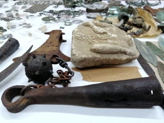 Öte yandan el konulan parçalar arasında kesici aletler, oklar, haçlar, mutfak malzemeleri ve işlemeli taşlar gibi birçok ürün bulunurken, tarihi ve arkeolojik açıdan kıymetli parçaların değerinin hesaplanması için uzman incelemesi başlatıldı.