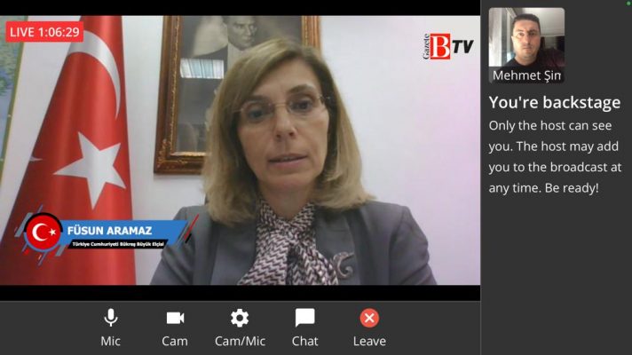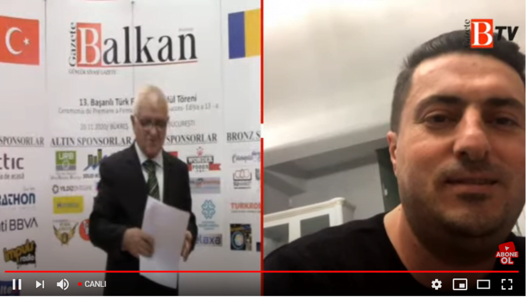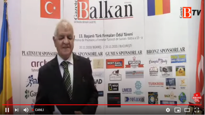 Mehmet Aslan'ın sunumuyla başlayıp, Youtube üzerinde yayın yapan Gazete Balkan Tv’de canlı yayın yoluyla gerçekleştirilen ödül törenine görüntülü olarak bağlanan Türkiye’nin Bükreş Büyükelçisi Füsun Aramaz, küresel salgın nedeni ile vefat edenlere baş sağlığı dileklerini ilettikten sonra Romanya – Türkiye dostluğu üzerine görüşlerini aktararak, bu dostluğun temelinde ekonomik ilişkilerin ağırlığı üzerinde durdu.