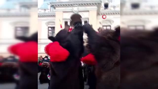 Romanya'da ayı kostümlü geleneksel yılbaşı kutlaması