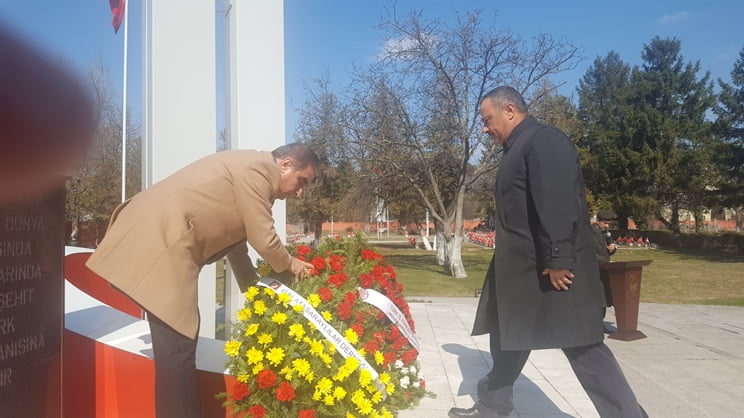 Törende Bükreş Büyükelçisi Füsun Aramaz ve Türk Silahlı Kuvvetler Ataşesi Albay Alper Dilsiz günün anlam ve önemine binaen birer konuşma yaptılar. Bükreş Maarif Okulu öğrencisi şiir okudu. Daha sonra Şehitlerimiz için dua okundu.