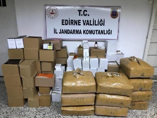 EDİRNE'de, jandarma tarafından arama yapılan araçta, kaçak yollarla İstanbul'dan Romanya'ya götürülmek istenilen bin 147 şişe parfüm ve 3 bin 200 oto kokusu ele geçirildi.
