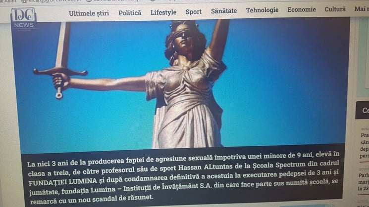 - LUMINA VAKFI bünyesinde bulunan Spectrum School'dan spor öğretmeni Hassan Altuntaş tarafından 9 yaşındaki küçük, üçüncü sınıf öğrencisine yönelik cinsel saldırının işlenmesinden 3 yıldan kısa bir süre sonra ve kesinleşmiş mahkumiyetinin ardından adı geçen okulun da bir parçası olduğu Lumina - Instituții de Învățamant SA vakfı 3 buçuk yıl sonra yeni bir skandalla öne çıkıyor.