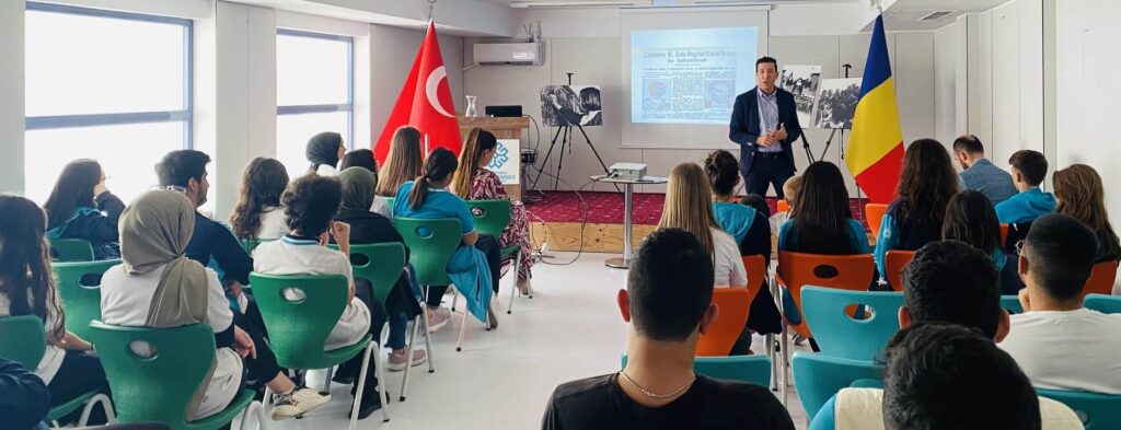 *Türkiye Cumhuriyeti’nin kuruluşunun 100. yılı etkinlikleri kapsamında Romanya Uluslararası Maarif Okullarında “Romen Kamuoyu Gözüyle Cumhuriyet ve Atatürk” konulu bir söyleşi gerçekleştirildi. Söyleşiye Türkiye Maarif Vakfı Romanya Temsilcisi Alpaslan Ateş de katıldı