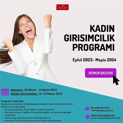 Bir iş fikrine sahip ve Romanya’da yerleşik olarak yasayan her kadının başvurabileceği programa kayıtlar 28 Nisan günü başlıyor. 8 Mayıs'a kadar açık olacak kayıtlar, www.royad.biz/girisimcilik sayfasından yapılacak.