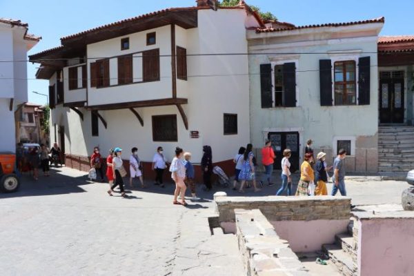 Daha sonra tarihi Kula sokaklarında gezen ve tarihi konakları ziyaret eden kadın konuklar, Emre Mahallesindeki Yunus Emre ve Tapduk Emre Türbesi'nde dua etti.