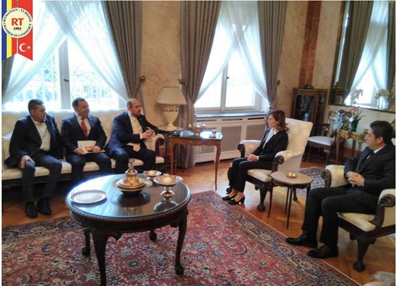 BÜKREŞ (Gazete Balkan)- Romanya Türkiye Ticaret ve Sanayi Odası (RTTSO) Başkanı Tamer Atalay, Onursal Başkan Önder Solak, başkan yardımcıları Adnan Yıldız, Ali Baraş, Alişan Düzgün, Abdurrahim Taş ve genel sekteter Koray Sarı’dan oluşan heyet geçen ay göreve başlayan Bükreş Büyükelçisi Füsun Aramaz’a bir nezaket ziyareti gerçekleştirdi.