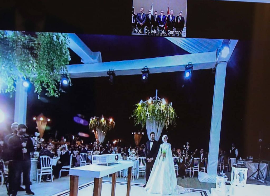 İkili resmî ziyaret ve Türk Dili Konuşan Ülkeler Parlamenter Asamblesi (TÜRKPA) Genel Kurulu'na katılmak için, Kazakistan’da bulunan TBMM Başkanı Mustafa Şentop nikah merasimine online katılarak genç çifte mutluluklar diledi ve sosyal medyadan ise, “Kuzey Makedonya Anayasa Mahkemesi eski Başkanı, aziz dostum Salih Murat’ın kızı Zeynep ile Muhammet Enes'in nikahına binlerce kilometre uzaktan, Kazakistan'dan katıldık. Tebrik ediyor, mutluluklar diliyoruz” diyerek paylaşımda bulundu.
