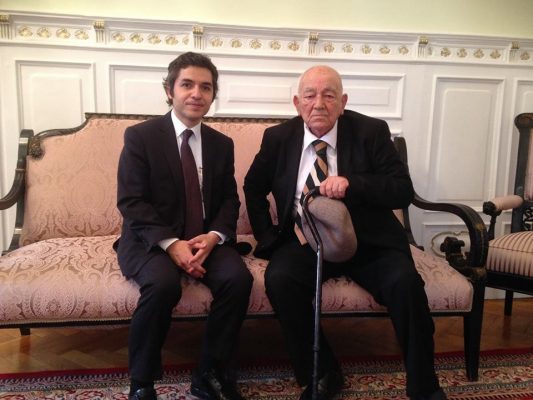 -Fototoğraf: Mayıs 2015 / Prof. Dr. Kemal Karpat, Bükreş Büyükelçiliği’nde dönemin Bükreş Büyükelçisi Osman Koray Ertaş ile (Foto: Gazete Balkan Arşive)