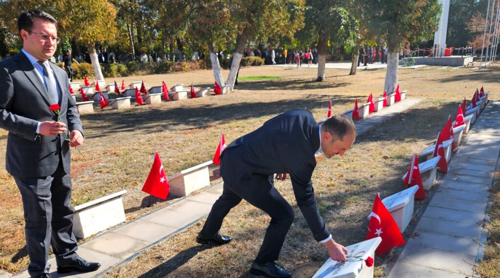 Katılımcılar şehit kabirlerine gül bırakarak saygı duruşunda bulundular.