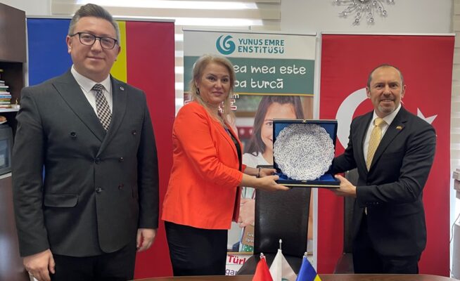 “Pek çok ülkede başarıyla yürüttüğümüz Tercihim Türkçe Projesi kapsamında, devlet okullarında seçmeli dil dersi olarak Türkçenin öğretimi konusunda bugün T.C. Bükreş Büyükelçisi Sayın Özgür Kıvanç Altan’ın teşrifleriyle, Bükreş’in köklü okullarından Titu Maiorescu Ortaokulu ile Tercihim Türkçe Projesi Protokolü imzaladık.