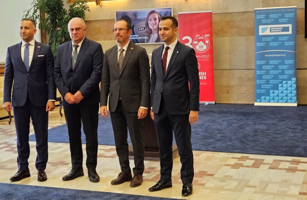 Türkiye’den gelen THY Satış Başkan Yardımcısı Sedat Orman ve THY Romanya Müdürü İbrahim Hakkı Güntay’ın da bir konuşma yaptığı Havalanındaki basın toplantısında THY’nın Türkiye’den gelen misafirleri ile Romanya ekibi ve Turkish kargo yetkilileri hazır bulundu.