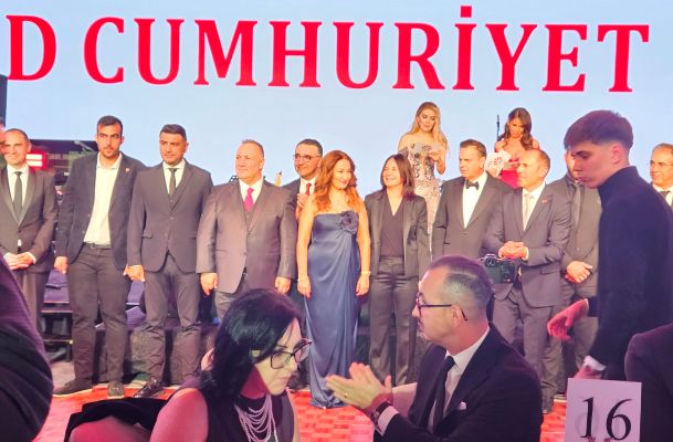 Şehitlere saygı duruşu ve iki ülke millî marşlarının okunmasıyla başlayan Cumhuriyet Balosu’nda sponsorlar sahneye davet edilerek alkışlandı.