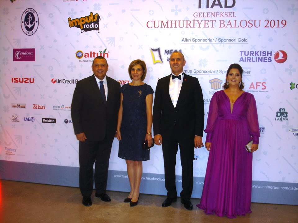 BÜKREŞ (Gazzete Balkan)- Romanya Türk İşadamları Derneği’nin (TİAD) düzenlediği geleneksel Cumhuriyet Balosu’nun 8’incisi Radisson Blu Hotel’de yapıldı. Türkiye Cumhuriyeti’nin kuruluşunun 96’ıncı yıl dönümünü ve TİAD’ın kuruluşunun 26’ıncı yılını kutlama amacı ile düzenlenen Balo’ya Bükreş Büyükelçisi Füsun Aramaz, Türkiye’nin Amman Büyükelçiliği görevine atanan Büyükelçi İsmail Aramaz, Bükreş 1. Bölge Belediye Başkanı Daniel Tudorache, Romanya Ulusal Sanayiciler Birliği(UGIR) Başkanı George Constantin Paunescu da katıldı.