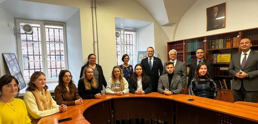 Çevik, Litvanya’da da TİKA’nın yenilediği Vilnius Üniversitesi Türkçe Öğretim Merkezinde Filoloji Fakültesi Dekanı Prof. Dr. Mindaugas Kvietkauskas ile Türkolog ve Türkçe eğitim gören Litvan öğrencilerle bir araya geldi.