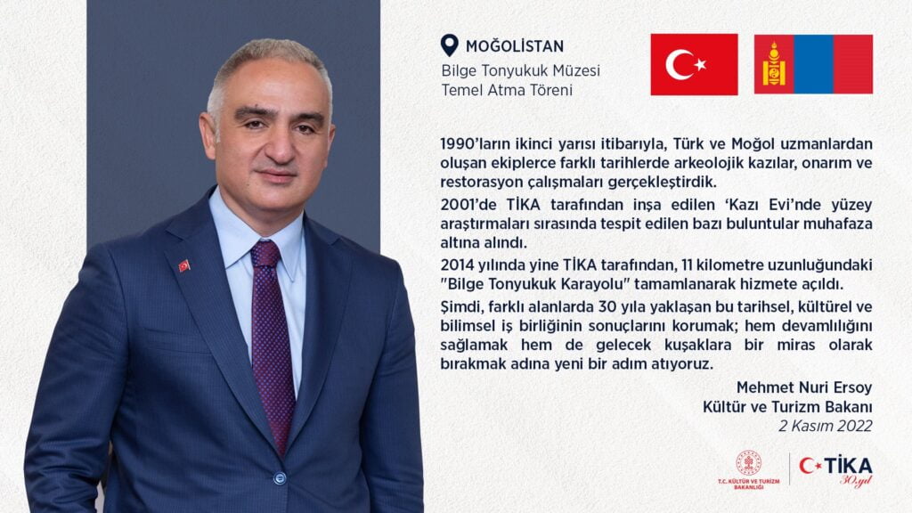 Bakan Ersoy, törende, TİKA tarafından bölgede bugüne kadar gerçekleştirilen çalışmaları anlatrak, Moğolistan ile farklı alanlarda 30 yıla yaklaşan tarihsel, kültürel ve bilimsel iş birliğinin sonuçlarını korumak, devamlılık ve gelecek kuşaklara bir miras olarak bırakmak adına yeni bir adım attıklarını söyledi.