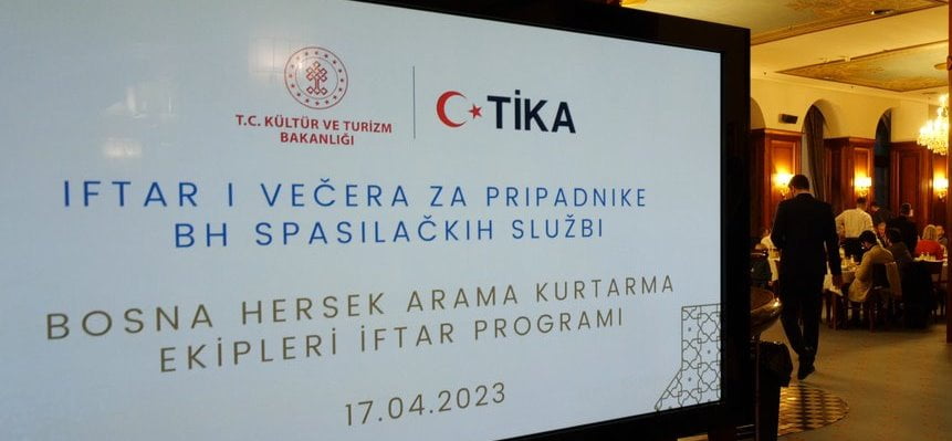 Türk İşbirliği ve Koordinasyon Ajansı Başkanlığı (TİKA), 6 Şubat'ta meydana gelen Kahramanmaraş merkezli depremlerde arama kurtarma çalışmalarına katılan Bosna Hersekli ekipler için iftar verdi.