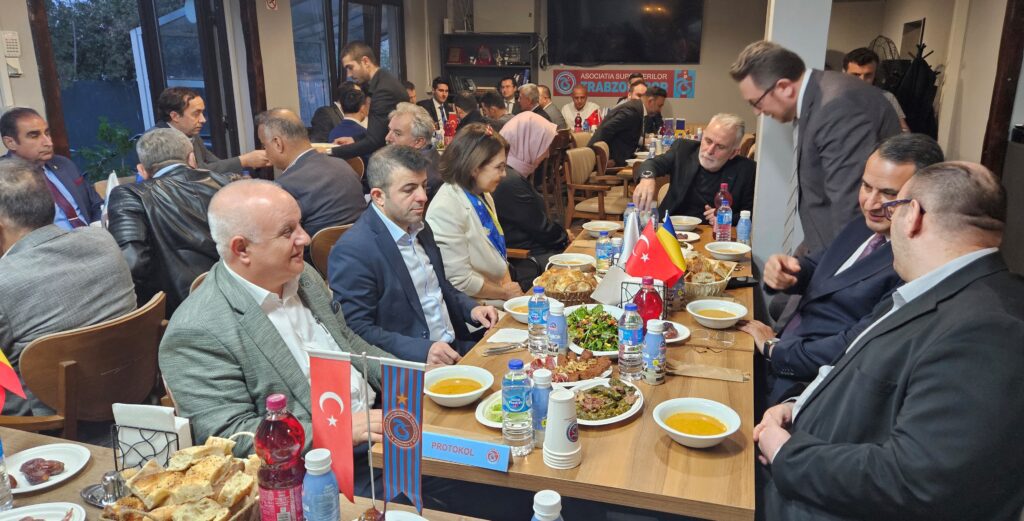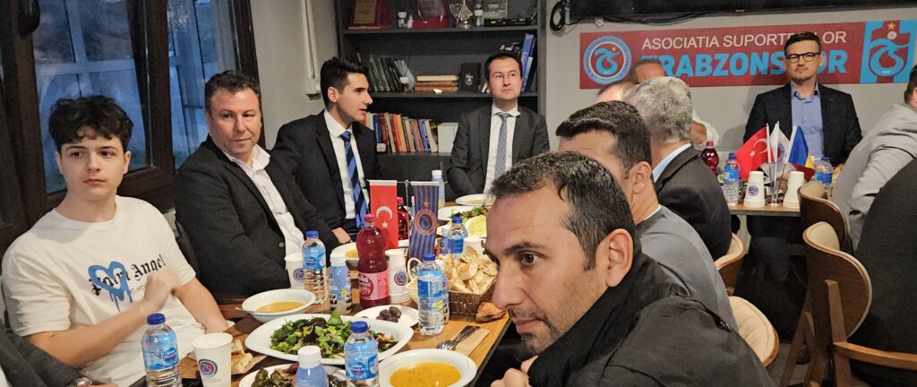 Pazartesi günü verilen Romanya Trabzonsporlular Derneği Başkanı Mehmet Fazlıoğlu, önceki dönem başkanı Süleyman Bostan ve diğer Dernek yetkililerinin ev sahipliği yaptığı resmi iftar yemeğine, Bükreş Büyükelçisi Özgür Kıvanç Altan, Büyükelçiliğe bağlı kurum ve kuruluş temsilcileri, DEİK Türkiye Romanya İş Konseyi Yürütme Kurulu Üyesi Ömer Süsli, DTİK Romanya temsilcisi Güven Güngör, TİAD Başkanı Ufuk Tandoğan, Başkan Yardımcısı Gürsel Öztürkmen, MÜSİAD Romanya Temsilcisi Cem Aksoy ile Galatasaraylılar Derneği, Beşiktaşlılar Derneği ve diğer davetliler katıldı.