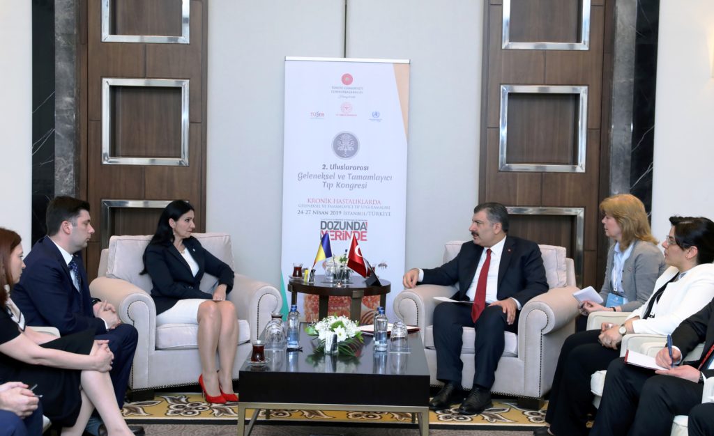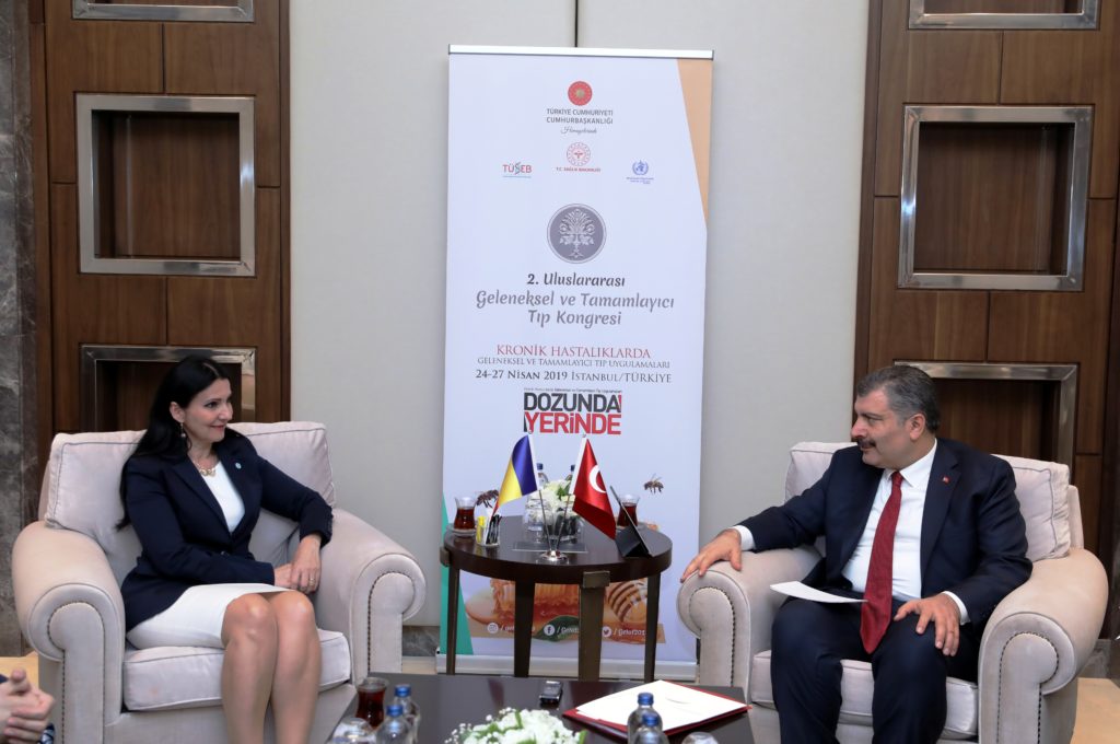 Cumhurbaşkanlığı himayelerinde, Sağlık Bakanlığı ve Dünya Sağlık Örgütü iş birliğiyle düzenlenen kongre kapsamında Koca, Romanya Sağlık Bakanı Sorina Pintea, Ürdün Sağlık Bakanı Ghazi Manwar Al-Zabin, Cibuti Cumhuriyeti Sağlık Bakanı Djama Elmi Okieh, Ukrayna Sağlık Bakan Yardımcısı Roman Ilyk ile bir araya geldi.