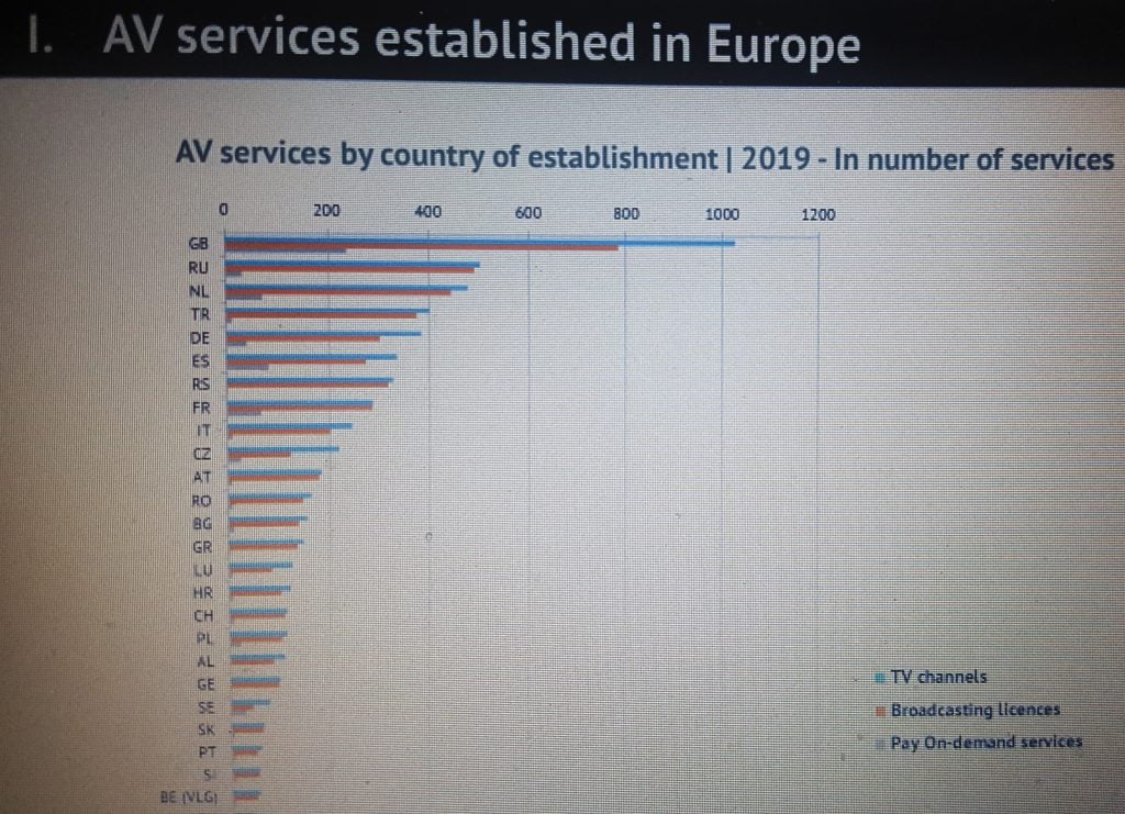 Avrupa’da 41 ülke ve Fas’ta toplam TV kanallarının sayısı 11 bin 418 ve bunların içinden 4 bin 757 kanal yerel. Avrupa’da uluslararası yayın yapan TV kanallarının sayısı ise 6 bin 420.