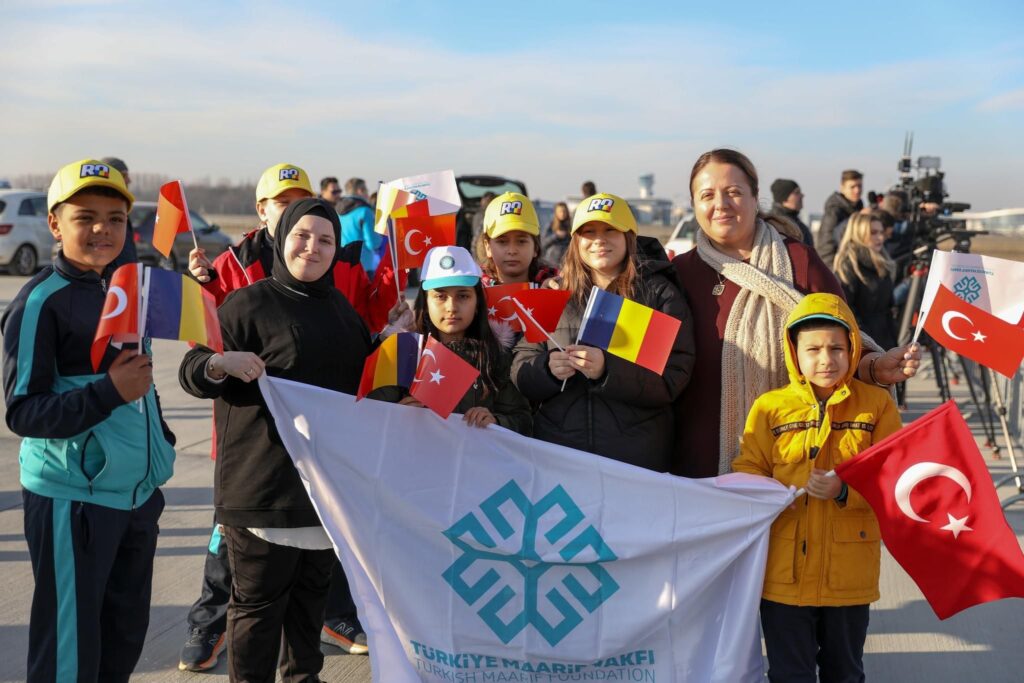 Gerçekleştirilen karşılama töreninde Türkiye Maarif Vakfı Direktörü Alpaslan Ateş eşliğindeki Bükreş Uluslararası Maarif Okulu öğretmen ve öğrencileri de hazır bulundu.