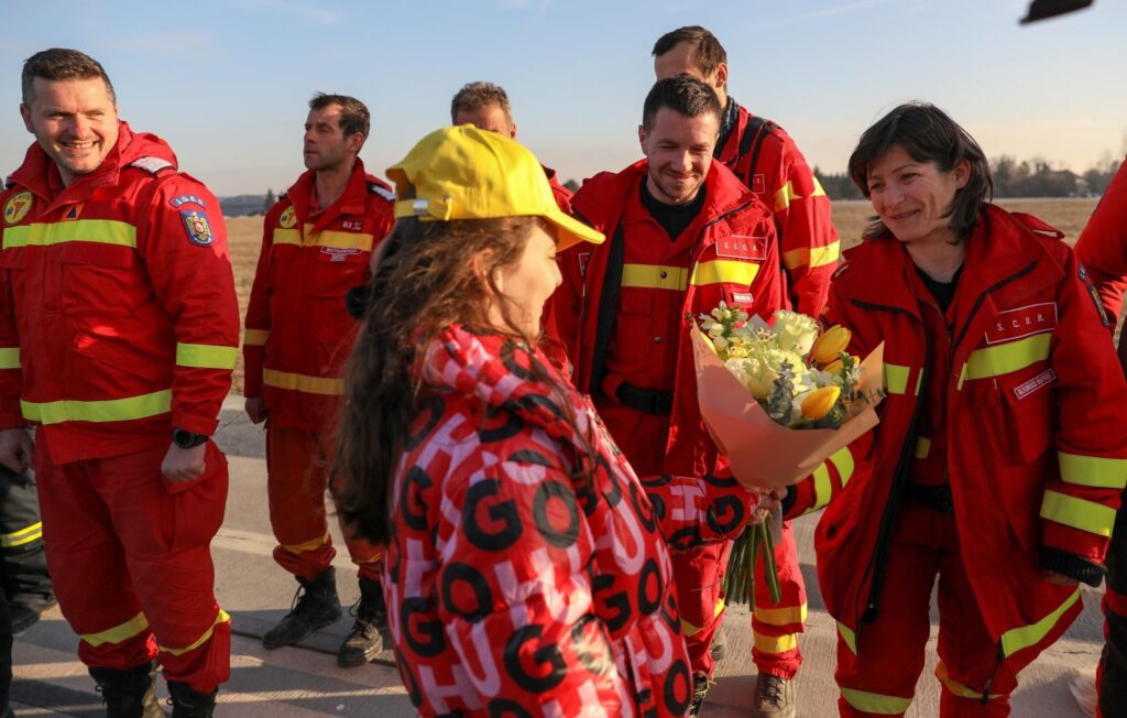 *Türkiye’de yaşanan deprem felaketinin ardından deprem bölgesinde arama kurtarma faaliyetine katılan Romanya’nın 2’inci arama kurtarma ekibi Bükreş Otopeni havaalanında törenle karşılandı