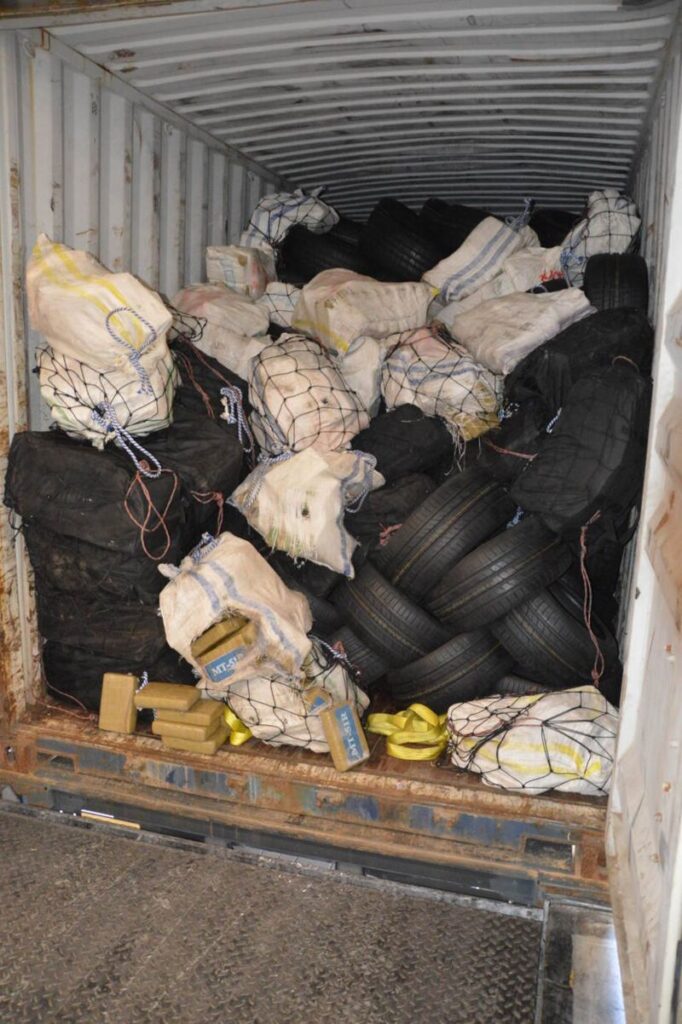 Türkiye’den Hollanda’daki bir şirkete gönderilen otomobil lastiği yüklü bir konteynerde 1 ton 124 kilo kokain bulundu.