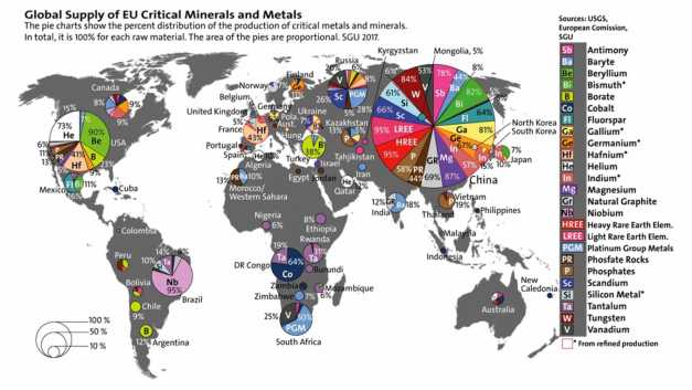 “Neredeyse akla gelebilecek tüm alanlarda gezegensel üretim sağlayan her şey için gerekli küresel rezervler sadece Çin, Türkiye, Rusya ve Brezilya'da yoğun olarak bulunuyor. Dünya endüstrilerinin bağımlılığı inanılmaz derecede yüksektir ve örneğin Rus enerji kaynaklarınınkinden çok daha fazladır” diyen yazar Avrupa Birliği’nin (AB) bu konudaki ihtiyacının yüzde 98’ini Çin’den ithal ederek karşıladığını belirtti.
