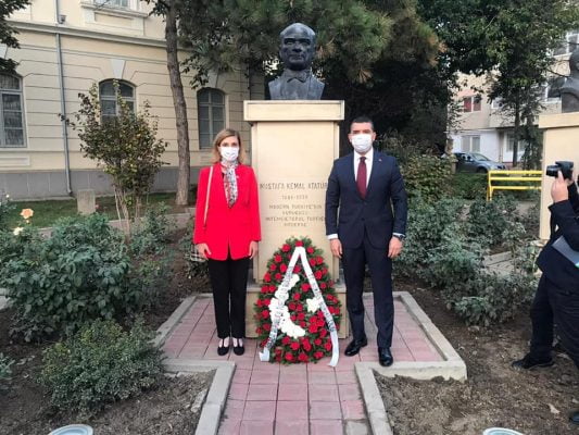 Atatürk büstüne çelenk koyduktan sonra Tulça Fahri Konsolosluğu’nun açılışını yapan Büyükelçi Aramaz, daha sonra Tulça Şehir Konseyi Başkanı Horia Teodorescu’yu makamında ziyaret etti.