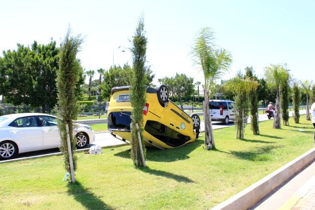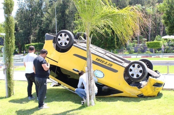 ANTALYA- Navigasyonun yanlış yola döndürmesi sonucu kendi şeridinden gelmekte olan taksiye çarpan Romanya uyruklu turist, takla atan araçtan sağ kurtulan taksi şoförüne Belek bölgesine nasıl gideceğini sordu.