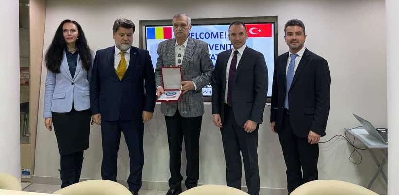 Romanya Türk Yatırım Derneği (TYD) Başkanı Nazmi Doğan, Romanya’nın önde gelen ve bölgedeki yatırımlarla yıldız sürekli parlayan Türk ve Türkiye dostu Prahova Ticaret ve Sanayi Odası Başkanı Aurelian Gogulescu’ya başarı plaketi verdi.