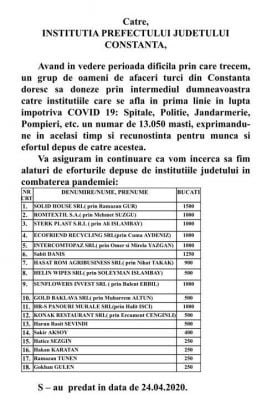 Uluslararası Kalkınma ve İşbirliği Derneği (UKİD) Balkanlar Koordinatörü Sabit Danış ve Gold Baklava’nın sahibi Muharrem Altun’un organizesi ve Türk işadamlarının katkısından oluşan yardımlar çerçevesinde Köstence’de İtfaiye, Hastahane , Polis ve jandarma teşkilatlarına 13.050 adet koruyucu maske dağıtımı gerçekleştiril